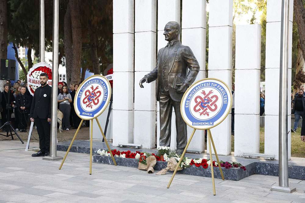 Cumhuriyetimizin kurucusu, Ulu Önder Gazi Mustafa Kemal Atatürk’ü, ebediyete intikalinin 87. yıl dönümünde, Ege Üniversitesi Tıp Fakültesi Hastanesi Atatürk Anıtı önünde düzenlenen törenle saygı, minnet ve özlemle andık. Atamızın aziz hatırasını yüreğimizde bir kez daha yaşattık. O’nun izinde yürümeye kararlılıkla devam edeceğiz